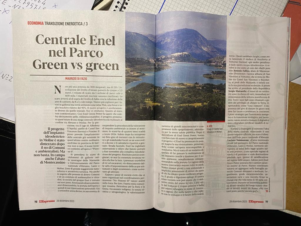 L’Espresso del 29 dicembre 2023 dedica due pagine alla vicenda Pizzone II.
